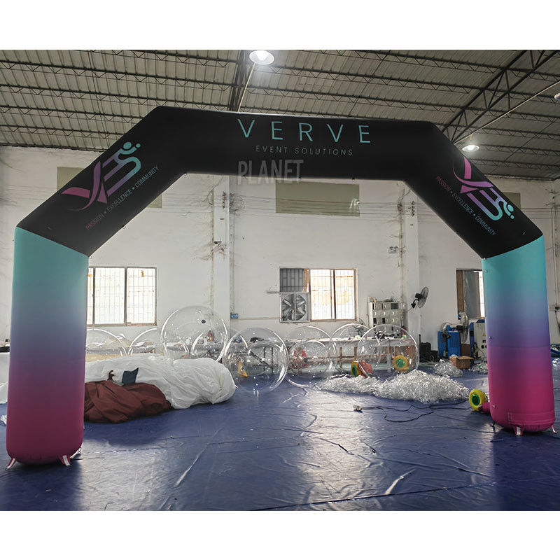 تأتي أقواس المداخل القابلة للنفخ هذه بأشكال مختلفة، بما في ذلك الأقواس التقليدية، والأقواس المربعة، أو الأشكال المصممة خصيصًا لتناسب العلامات التجارية أو موضوعات الأحداث المحددة. تجذب الألوان النابضة بالحياة والتصميمات الجريئة الانتباه وتجعلها تبرز في أي بيئة. يمكن عرض الشعارات أو الشعارات أو عناصر العلامة التجارية الأخرى بشكل بارز على سطح القوس، مما يزيد من رؤية العلامة التجارية والتعرف عليها.
